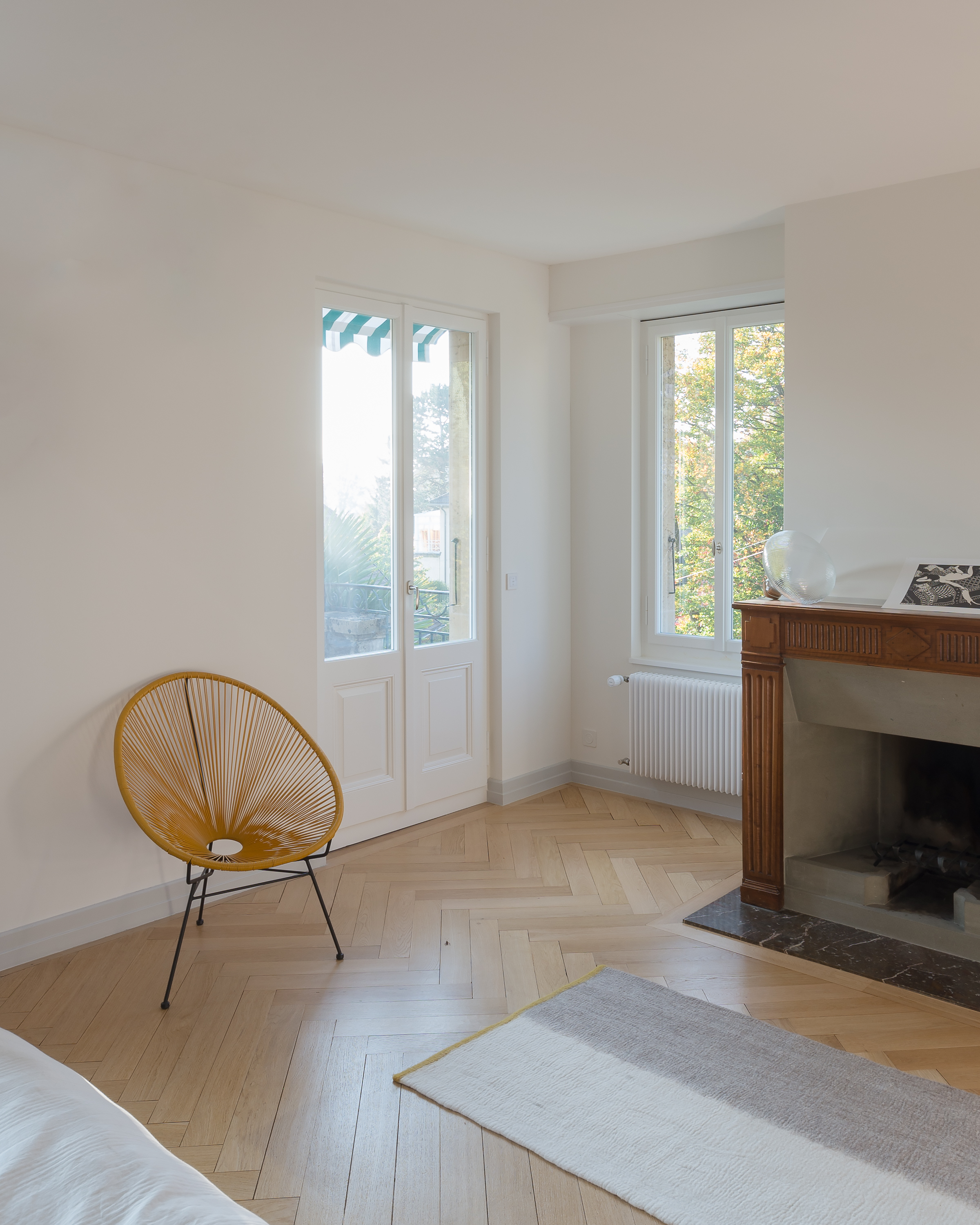 Implanté sur les hauteurs des flancs de la vallée de la Vuachère dans le quartier résidentiel de Chailly, la villa de trois étages, construite dans les années 1930 jouit d’une implantation sud-est sur sa façade principale et de magnifiques percées visuelles sur les premiers contreforts des coteaux du Lavaux.